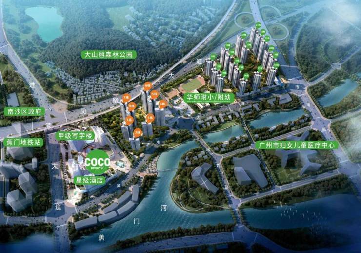 项目自带10万㎡情景式购物中心 COCO Park,打造4层主题购物空间+1层天台花园,集潮流、美食、运动、休闲、娱乐于一体。引进精品超市百佳永辉、超5000㎡横店影城、南沙首家带恒温泳池的高端健身品牌POWAVE力浪健身、南沙首进品牌超60%。