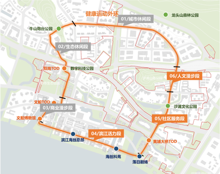 提升重塑“健康运动外环+海丝体验/国潮休闲内环”,衔接活力廊道强化区域公共空间共享。