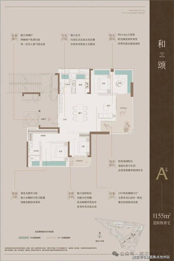值得一提的是,该项目有15421.52平阳台建筑面积为不计容,户均阳台赠送建筑面积约19平。这是按照“光谷7条”楼市新政执行的,目前招商天青府、驿山高尔夫、万科光谷锦上等盘也是此类标准,户型在面市时会有2个面积计算方式,一个是建筑面积(阳台算一半),一个是计价面积(阳台全送)。而且光谷的规划标准和武汉市的有冲突,因此此前同类项目购房合同、房产证据说都是按大面积计算(建筑面积,阳台算一半),而项目所有户型计价面积之和(阳台全送)等于项目计容建面。因此大概可以理解为阳台面积是规划送给了开发商,但开发商是按一半面积的正常计算方式卖给购房者了。当然开发商这部分是没有土地成本了,因此户型如果按照大面积计算(建筑面积,阳台算一半),单价理应低一些才合理。