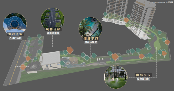 园内规划森氧水吧、森系全龄乐园、轻氧健身、觅林归境、秘境花园、海浪涟漪六大主题园区,让旅居生活享有更多美好日常。