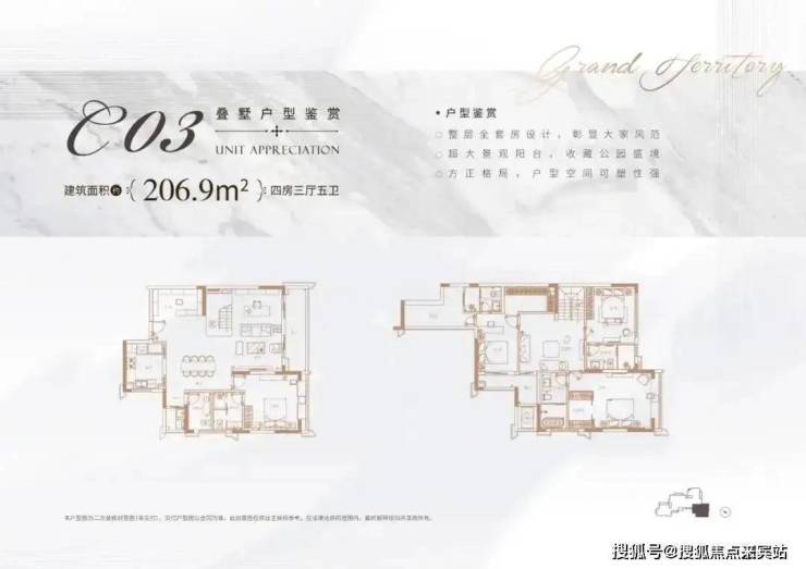 「产品详情」:别墅、叠墅、大平层等全系户型图、主力面积段、实际得房率