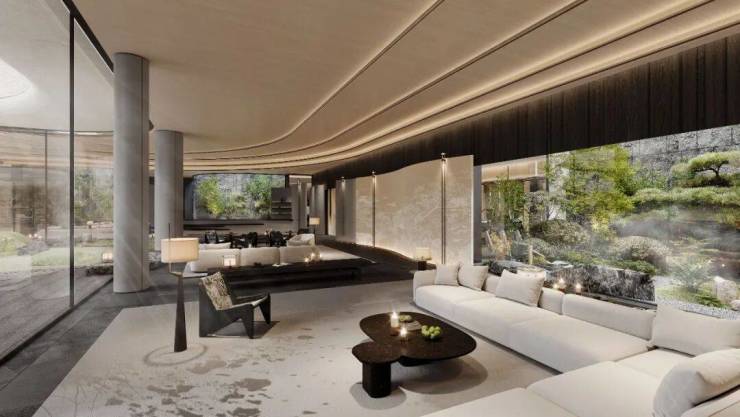 【怀山望】塑造 "公园旁"到"公园里" 的绿色生态社区,并通过会所设计打造友好开放的 创新性社区界面,以优圆弧线条、经典温润材质及精致细部设计 打造新型海派建筑气韵。