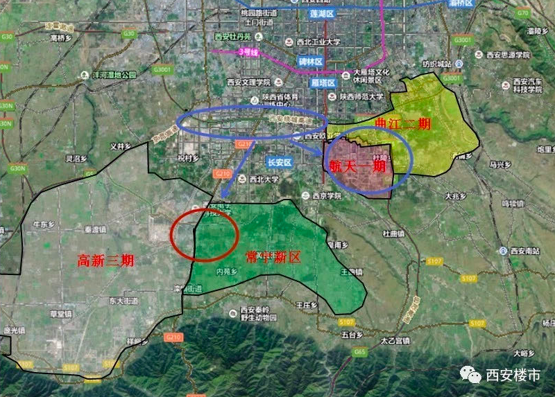 在南控态势下,城南以曲江二期、航天基地、长安区、高新三期等组团式推进。在城市不断发展之下,大城南以交通、商业、环境等不断优化,区域一体化态势明显,城南区域置业吸附力在持续增强。