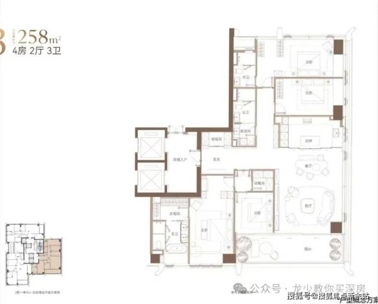深圳湾顶豪「深圳湾澐玺」最后1栋—南区2栋1单元已开启意向登记,将很快取证入市。户型面积为202-225-258㎡,3个面积段每层各1户,4梯3户,35层,共89套。