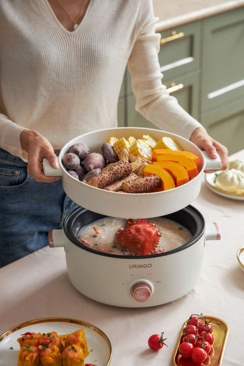 上蒸下煮,多种美味同步进行的多功能料理锅,健身、减肥人群和懒人必备,多功能满足蒸煎煮炖多种烹饪方式随心切换。嵌入式聚能发热体,大火聚能煮,小火中温烹调,小煮慢炖轻生活,从备菜到出锅速度快,每个与柴米油盐玩耍的晚上,都会因为将照顾得更好好而感到幸福。功能多样,完全替代家里的炒锅、煎锅、炖锅、蒸锅,使用便捷也不占地方,3L大容量,约上三两好友一起涮锅子再惬意不过了;双温控防干烧,高温自动停机,贴心安全的设计,不用担心因为忘记关火而引发意外;Teflon不粘内胆,清洗方便省心。