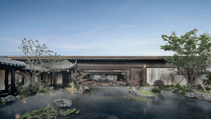 博采传统中式元素、融合现代景观语言打造“一脉两居 一府两门 十境七巷”,取国画意境、美学、技巧融于园林中,营造画即园林,园林即画的山水画文人园。