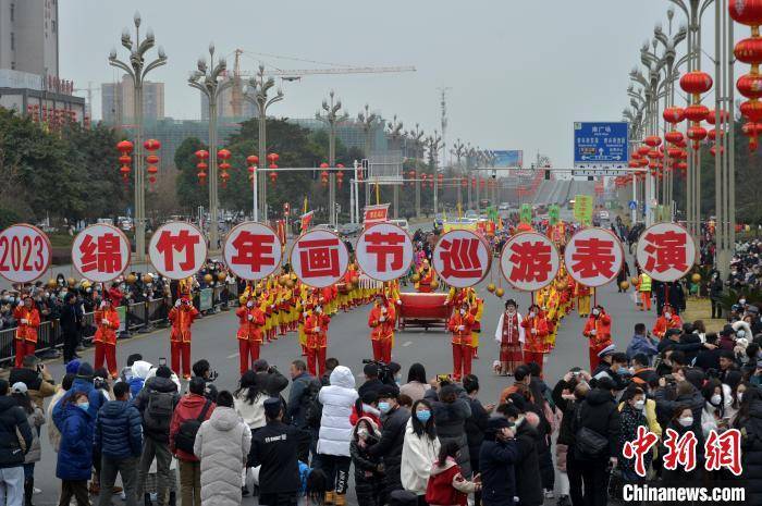 中新网德阳1月14日电 (吕婕)“从小年到大年,到绵竹过中国年。”1月14日,正值小年,四川德阳绵竹市迎来了2023年第二十二届绵竹年画节,这也是时隔两年后的首次线下年画节。