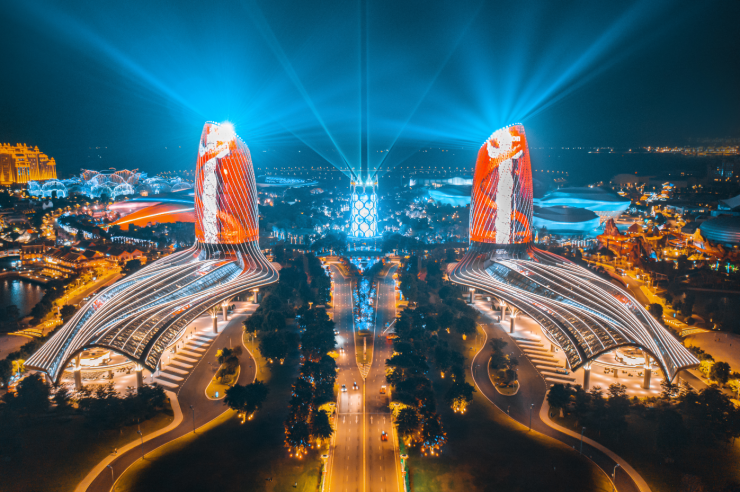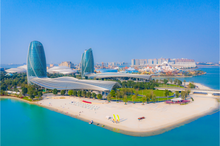 中国海南海花岛位于海南西北部儋州市黄金海湾区,总占地7.8平方公里,由三个离岸式岛屿组成,历时十二年打造而成,是集“吃住行、游购娱、会康文”等28大业态于一体的一站式旅游度假目的地,已被列为海南省“十四五”规划重点旅游度假区之一。自今年元旦试运营以来,累计接待游客近500万人次。