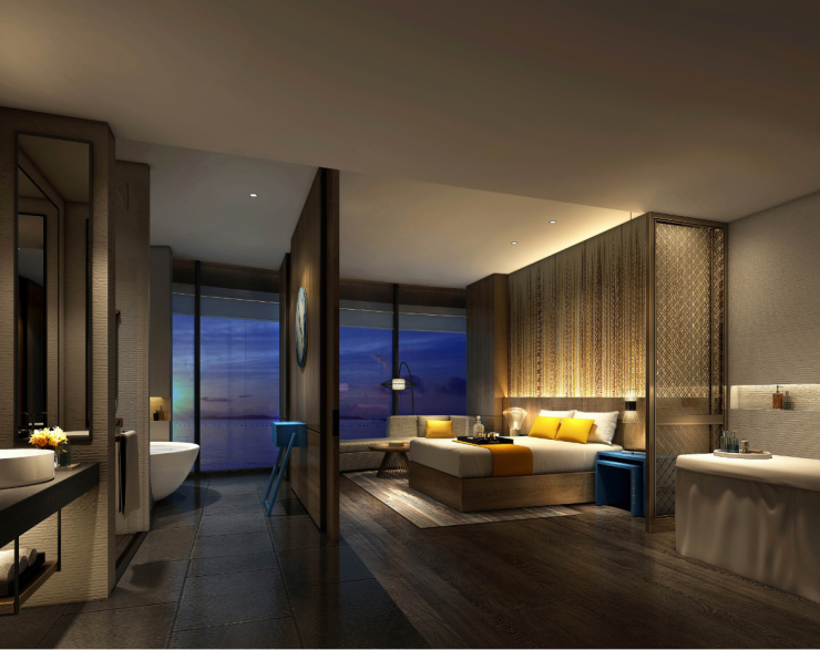 海南海花岛希尔顿酒店作为入岛地标建筑,采用孪生双塔设计将自然美学与建筑美学优质融合,是全球少有的海上双塔酒店,80米全岛至高观景点,将旖旎风光尽收眼底。同时,该酒店坐拥主题乐园、购物美食、滨海娱乐、文化演艺等全球最丰富的文旅配套,为游客提供高端定制、多元化、创新性的旅游酒店度假体验。
