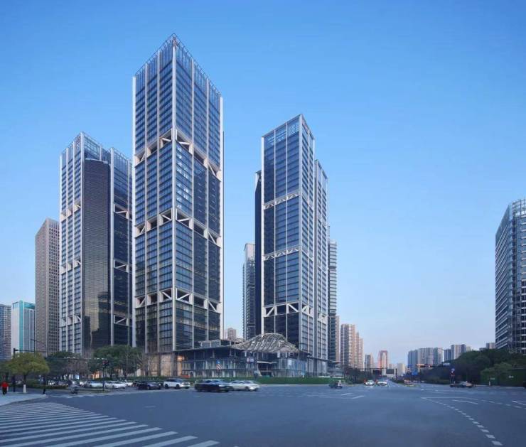 为完美融入城市界面、交通动线,EIC进行了建筑退让,与JP摩根大通新总部一样营造大面积的、可作为城市广场的广阔区域——超级落客区,不仅提升总部企业门户形象,更改善公共环境,跃升国际化城市封面,助力钱江世纪城领峰全球。