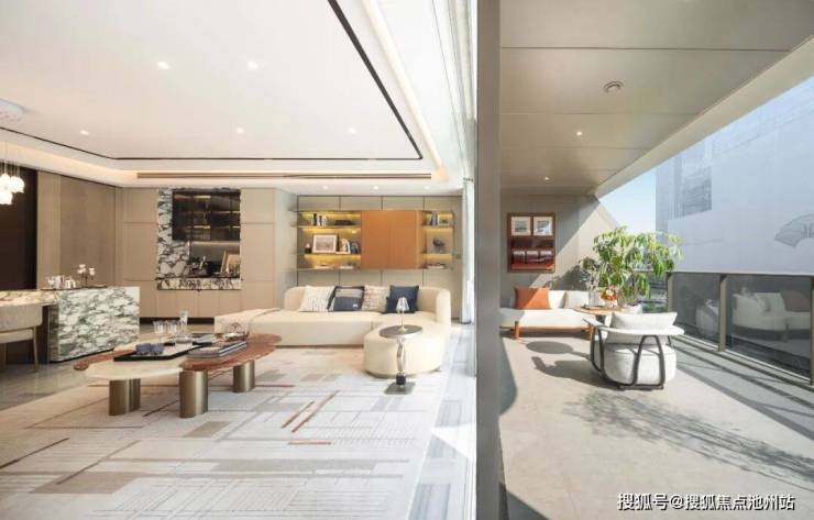 建面约256㎡中叠,则以“空中院境”重新定义城市栖居。其精巧之处在于,将阳台与露台无缝衔接,形成一处悬浮于城市上方的通透绿洲。于此,视野不再受框限,晨光、云影、晚霞皆成为家中流动的壁画。设计在开放与私密之间取得精妙平衡,既保障了家庭生活的静谧性,又赋予了一份“出则繁华、入则宁静”的空中庭院惬意,实现了垂直维度的诗意栖居。