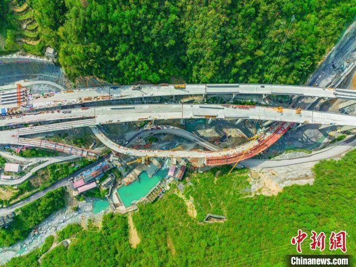 雪宝山互通主线桥的情形,只是雪宝山互通工程的一个缩影。据承建方中铁十一局集团第五工程有限公司介绍,该工程桥梁占比99.6%,工程紧邻崇山峻岭和水流湍急的河道,没有一块平地,施工可谓是在“刀尖上跳舞”。