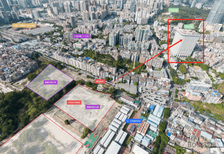 综合医院:直线 3km 范围内有 4 个一级及以上医院,其中中山大学附属第六医院(院本部)距离楼盘直线约300米,暨南大学附属第一医院距离楼盘 2.4km,南方医科大学第三附属医院距离楼盘 2.8km。