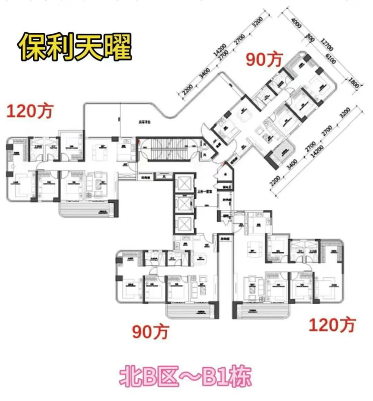 北地块主要由3栋塔楼组成,面积有90-120平三四房
