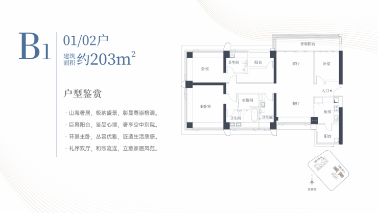1栋二单元B1户型:面积约为203㎡