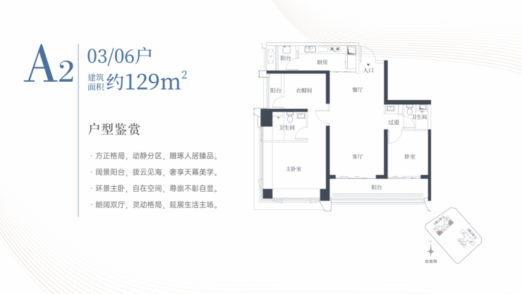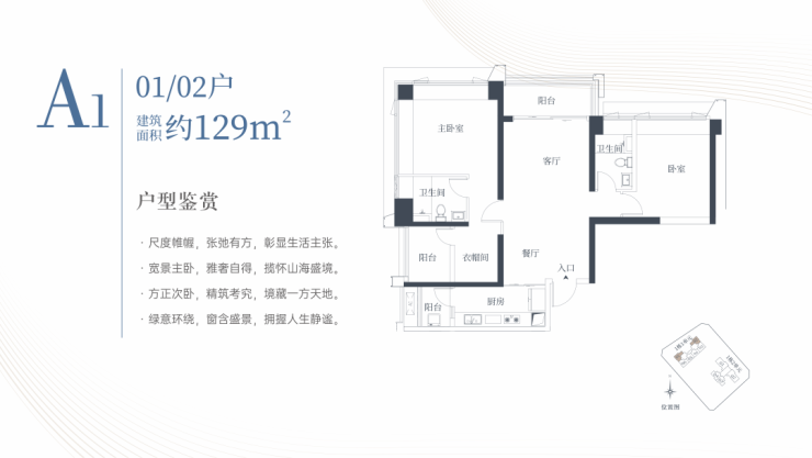 1栋一单元A1、A2户型:面积约为129㎡