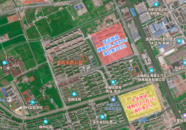 2016年,信达以溢价率303%,折合楼板价约3.64万/㎡摘得顾村地块。