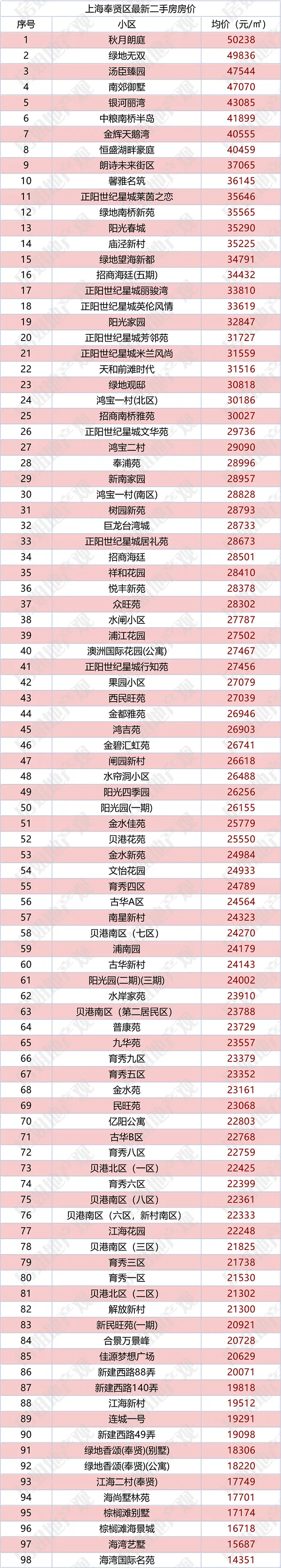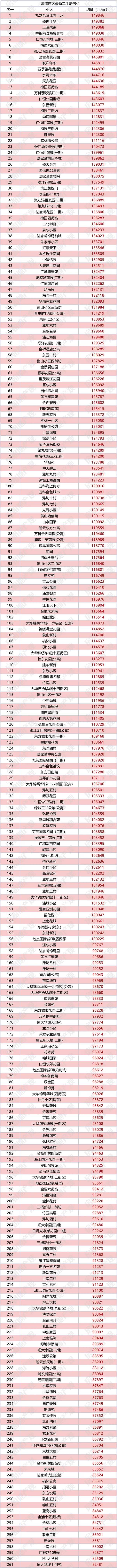 房姐更新了较新上海各区的二手房价数据,看看你的小区是涨了还是跌了呢?