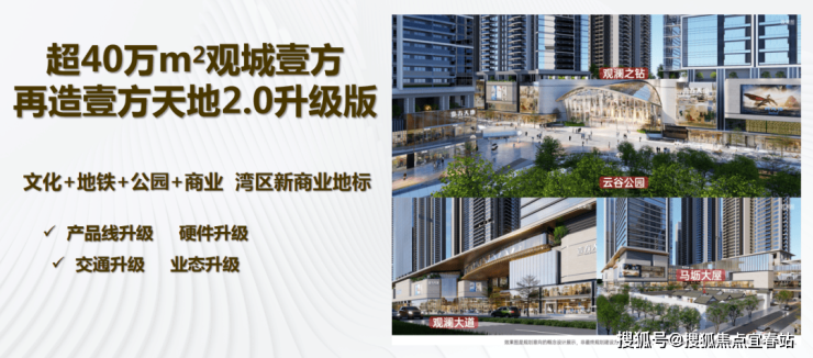继前海壹方城、龙华壹方天地两大标杆后,鸿荣源再启商业新篇,以地铁 + 公园 + 文化 + 商业为核,打造约40 万㎡观澜壹方(壹方天地 2.0)观澜之钻地标、马坜大屋历史建筑,以立体云环串联多元场景,筑就特色文化商业街区,焕新区域商业格局,缔造湾区商业新地标。