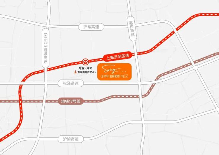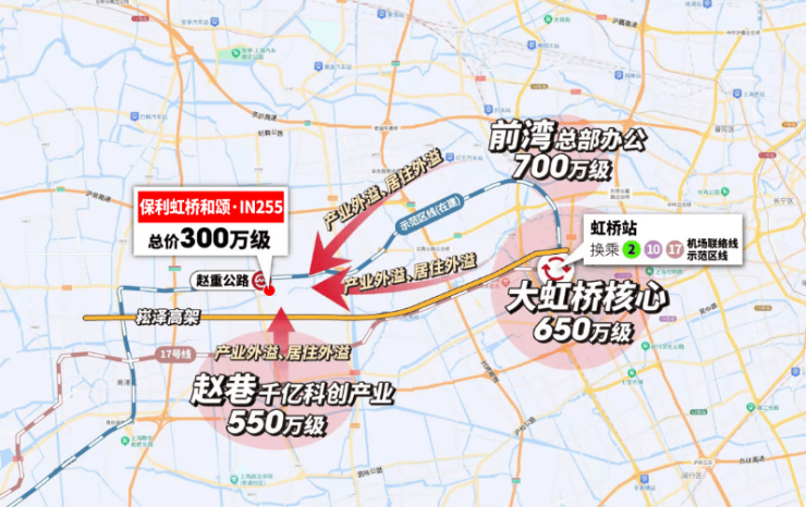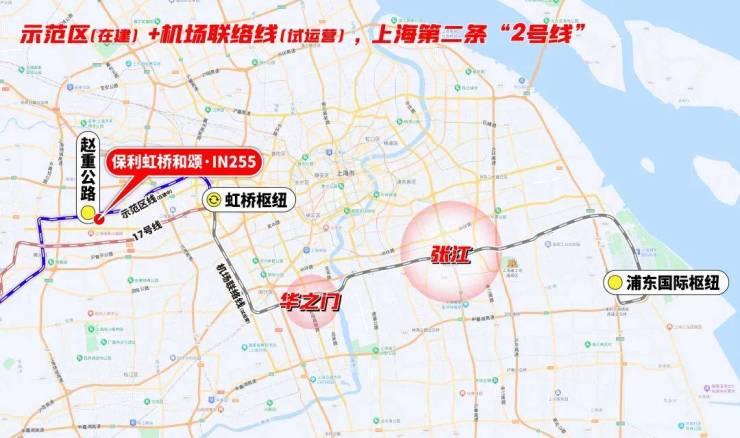 保利虹桥和颂·IN255不仅有轨交规划正在落地,且直线距离示范区线赵重公路站(在建)仅约350米,是不可多得的真轨交盘,3站虹桥芯,5站华为基地,7站张江。