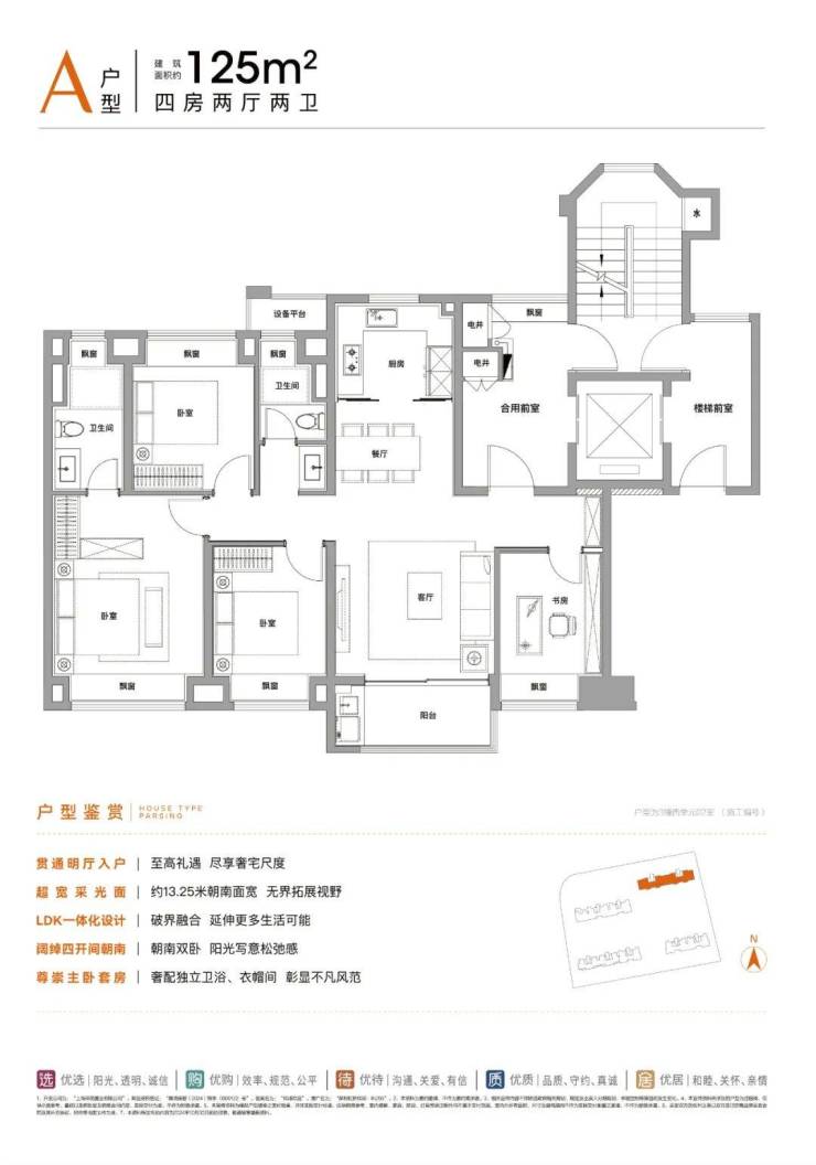 建面约125㎡4房2卫: