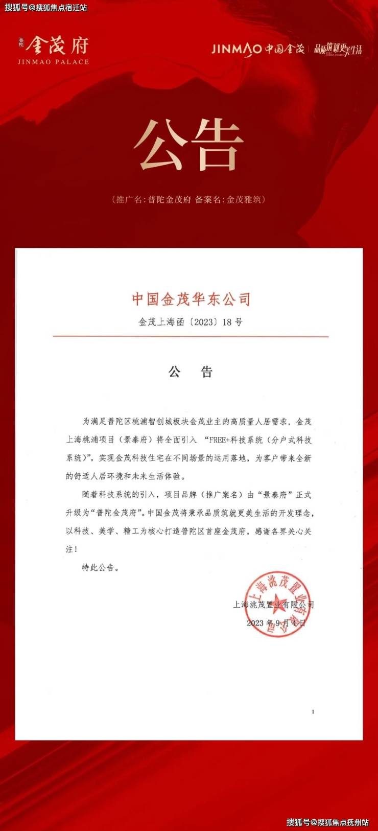 2023年9月4日,中国金茂华东公司发布一则公告:金茂上海桃浦项目(景泰府)更名为普陀金茂府预约热线:400-000-0460转6666☎。