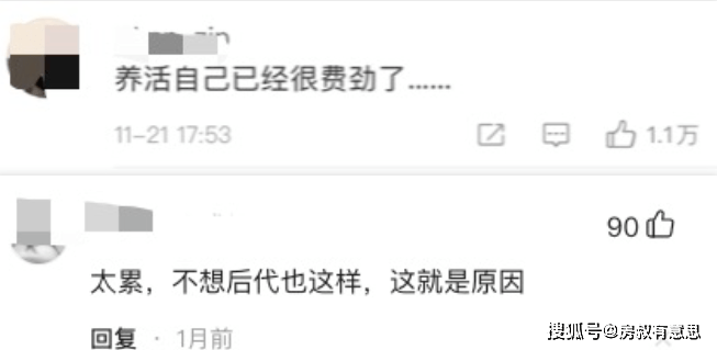 此外,不乏还有一部分年轻人觉得养活自己已经不容易了,就更不想让自己的娃重走老路了。