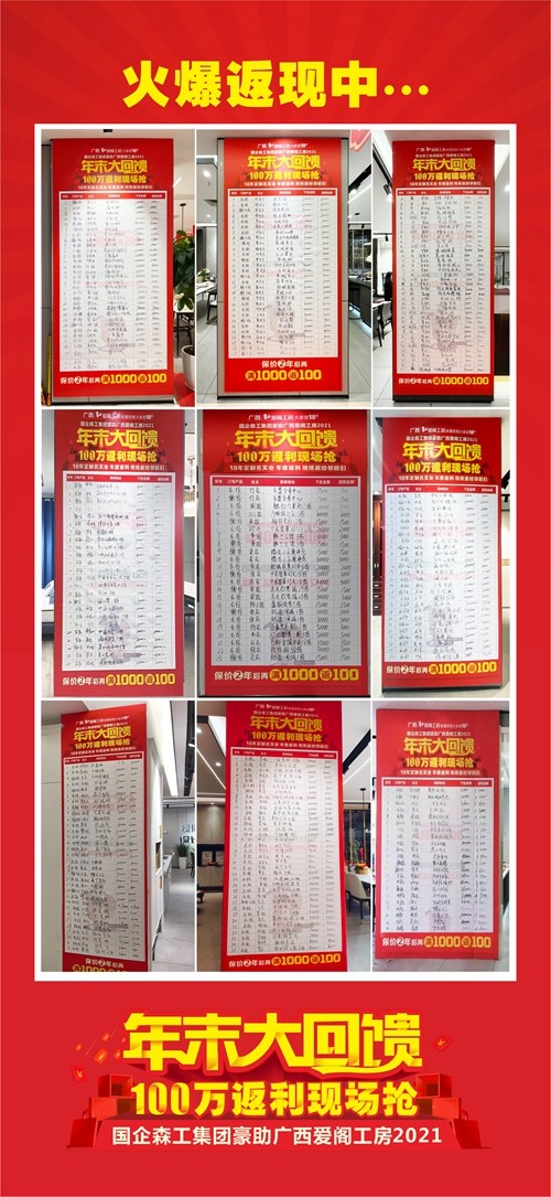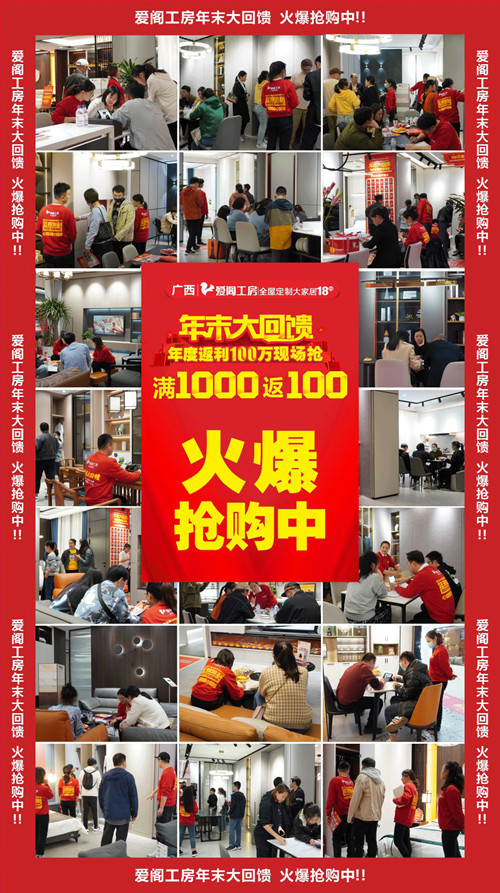 爱阁工房全屋定制作为深耕广西市场18年,集研发、设计、生产、 销售、服务为一体,涵盖各种风格橱柜、衣柜的定制名实业,在多年发展中深受众多客户的认可。在此辞旧迎新之际,爱阁工房为回馈广大客户的支持,启动年末大回馈活动。活动期间国企森工集团豪助2021年度返利,100万元现金现场抢。工厂总部承诺买贵双倍