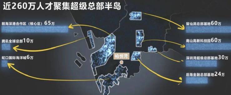 七大全球总部基地,激荡全球资本的湾区超核,由总部经济带串联,吸引大批诸如腾讯、大疆、阿里巴巴等行业龙头企业,以及大批总部企业入驻,未来将吸引260万人才聚集。