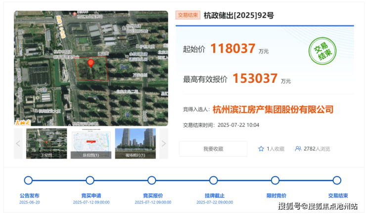 2025年7月22日,滨江集团成功竞得92号地块,该地块位于北部新城南面,直线距离拱墅区约500米,东面是滨江的大盘万家名城。