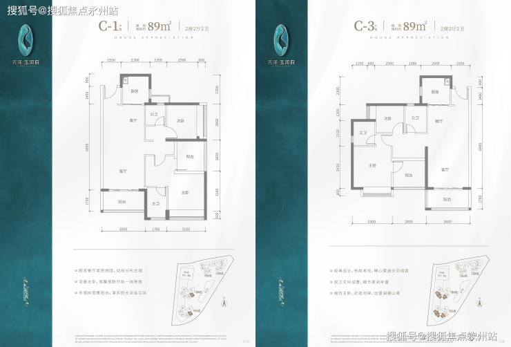 C1/C2户型:东南向,客厅+主卧阳台直面茅洲河,得房率90.6%-90.9%