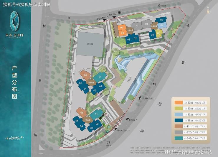 项目主推户型:80-83㎡的3房1卫,89㎡的3房2卫,111-125㎡的4房2卫,143㎡的4房3卫户型。