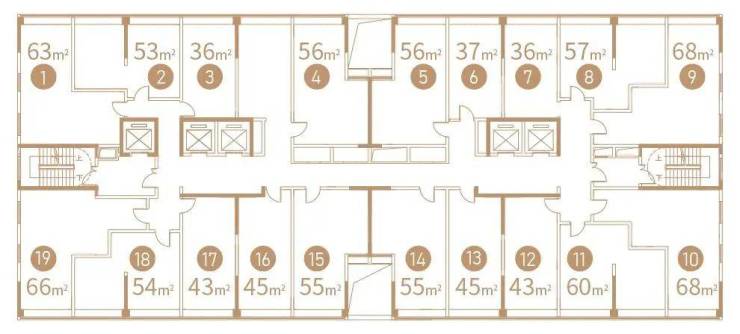 D-2公寓:399户(36-45㎡大单间,53-60㎡一房一厅,63-68两房一厅)