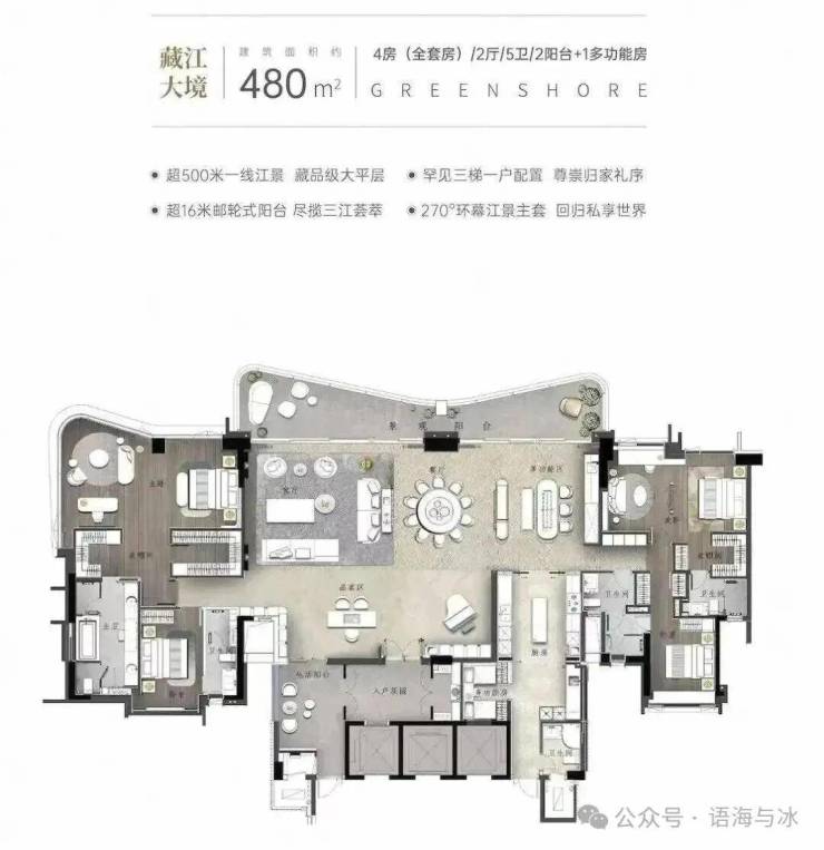 画江为界,跨越时代的岛尖藏品,4套房2厅5卫+1多功能房设计,4.0时代人居范本,重新定义珠江豪宅天花板。