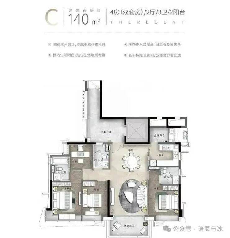 【洋房户型】140㎡-270㎡四房双主套