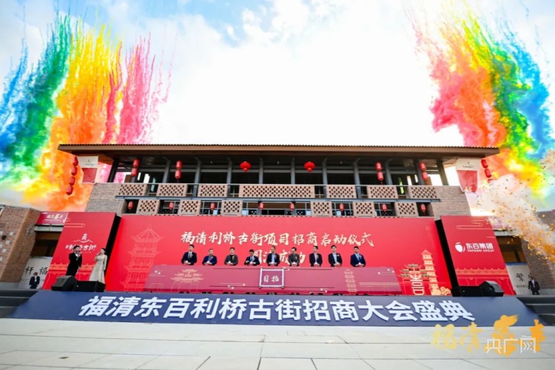 央广网福州12月9日消息(记者 童正忠) 福清城市客厅,漫游式文旅融商天地,正迎面而来。12月8日,福建省福清利桥古街项目推介会暨招商启动大会于福清利桥古街-龙江门广场盛大启幕。福清市政府、福清市商务局、福清市文旅局、福清龙山街道、福建东百集团、福清东百文化旅游发展有限公司、福清东百置业有限公司等单位领导出席庆典。