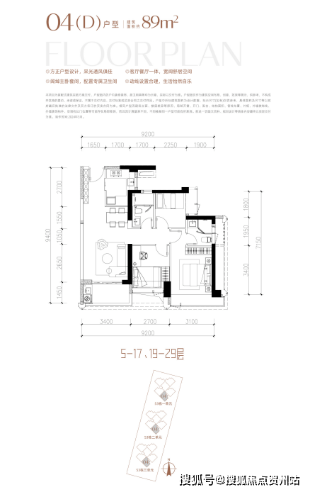 89平的3房2卫的产品,一般核心地段90平只做3房1卫,这次做了3房两卫,空间利用率很好,户型显得弥足珍贵,按照上一期9.9万的开盘价,总价门槛可以低至7字头,可以说是前海最低的上车门槛,应该能吸引不少看好前海且预算稍微紧张点的南山买家。