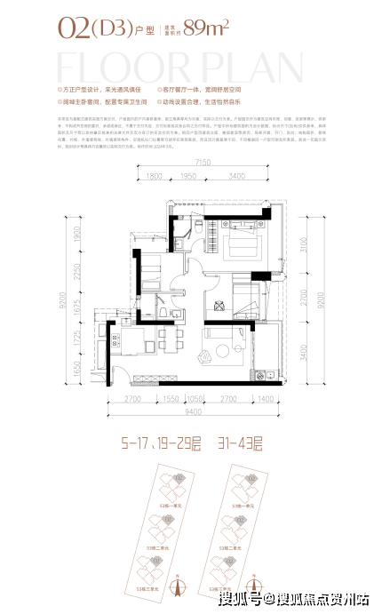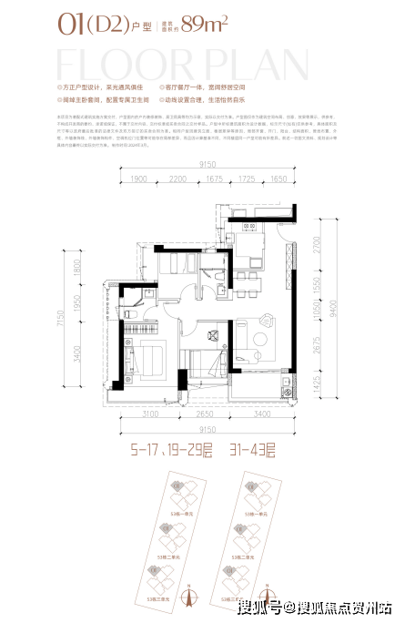 159套89平3房(3T5):折后均价9.95万/平,总价781万起;