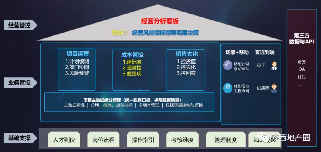 双方项目团队在调研和分析公司管控的核心痛点后,在管控思路上做了全面升级,确立本次建设的蓝图:通过“管理+IT”的视角,建设经营管理平台,保障战略达成。