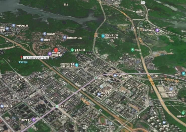 万科未来之光家园,雄踞于宝安区新安街道广盛路与广泰路交汇之处,恰处于宝安尖岗山豪宅区的核心地带,地理位置极为优越。其坐落于宝安中心区、南山科技园以及西丽留仙洞三大区域的中轴线上,可谓是左右逢源。项目依山而建,背倚青山绿水,周边尖岗山公园和宝安公园如翡翠项链般环绕,营造出令人陶醉的生态美景。邻近区域云集了深圳诸多知名豪宅,如曦城别墅区及中海九号公馆等,尊荣地位不言而喻。