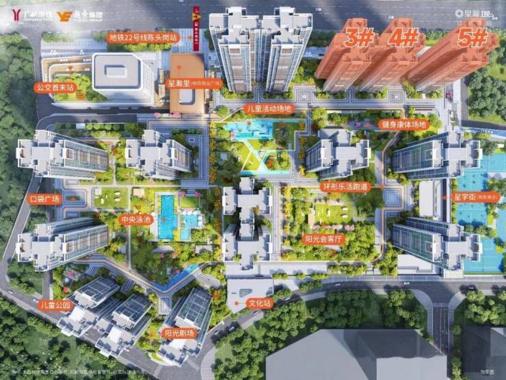 越秀星瀚就位于这个板块的陈头岗站旁,由广州地铁与越秀集团联合开发,依托 TOD 模式打造的生活社区,在交通、教育等配套上有着明确的落地呈现。