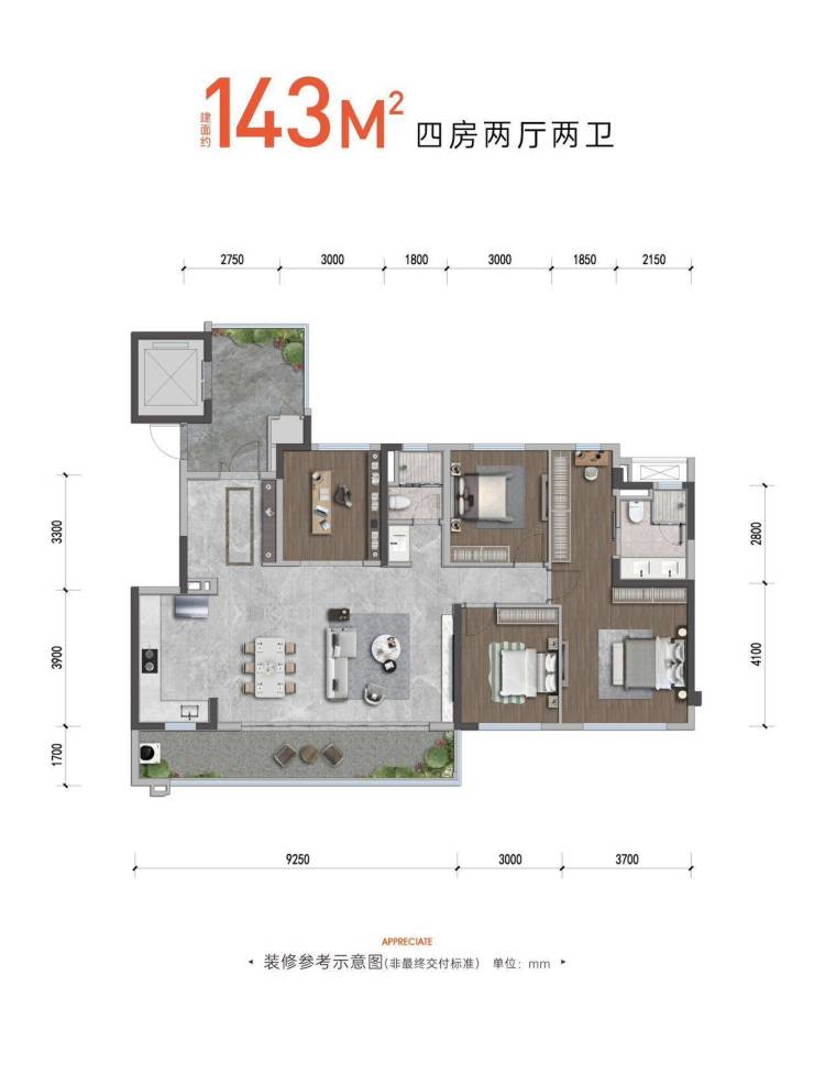 143㎡四室两厅双卫