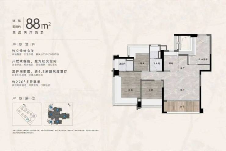 3️⃣ 【建面约88㎡南向三房】南向三开间