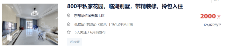 七区的别墅价格更贵,其中最便宜的一套161平挂盘2000万,单价约12.4万/㎡。
