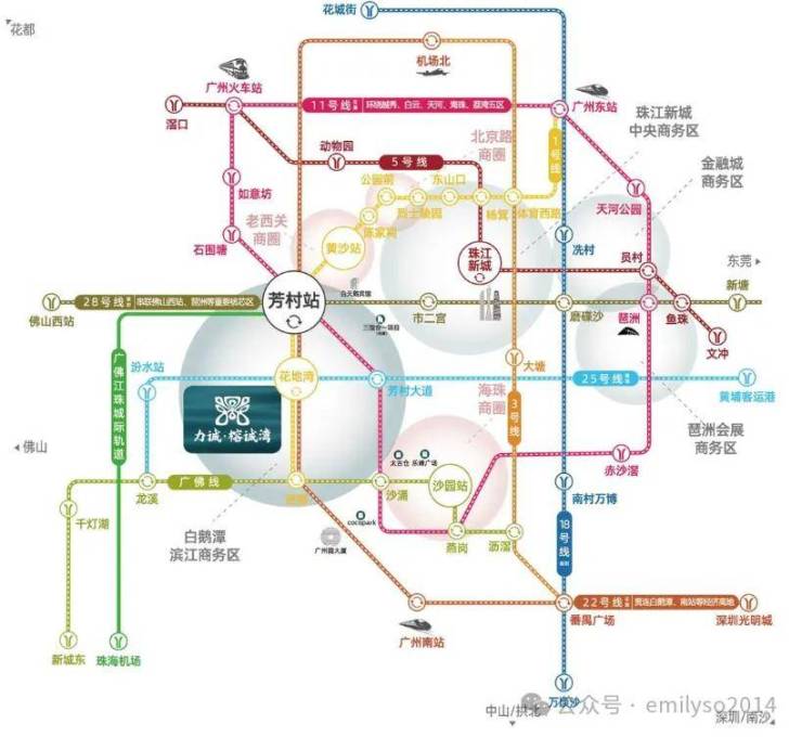 4站海珠、2站西关、5站越秀;3km到达海珠,4km到西关6km到越秀;项目东侧和西北侧有两个公交枢纽,两站直达地铁1号线花地湾或白鹅潭站(现1号线芳村站)。
