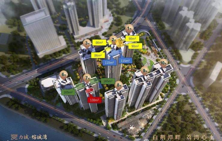 整个项目由8栋住宅组成,仅有1466户,是市中心难得的低密度住宅项目,这期产品环境优美,居住舒适度极高,拥有区域内最高的47%绿地率,同时周围环绕着4个公园,因此我们称之为“一江四公园”。江景4公园跟其他江边环境不同的是,我们所处的花地河畔拥有广州最宁静舒适的江畔环境,由于这里居住密度低,周边均是住宅区,所以江畔保持了静谧的原生态环境,同时还有4个公园环绕,所以这里空气的负离子浓度媲美白云山。为了衬托优美的花地河景观,力诚耗资2亿,在红线外打造花海路500米榕岸景观的【花地河绿道公园】、【榕城公园】、【铁路主题公园】、【花境公园】共4个公园,让业主在家门口实现一线江景+4公园的双重舒适生活。