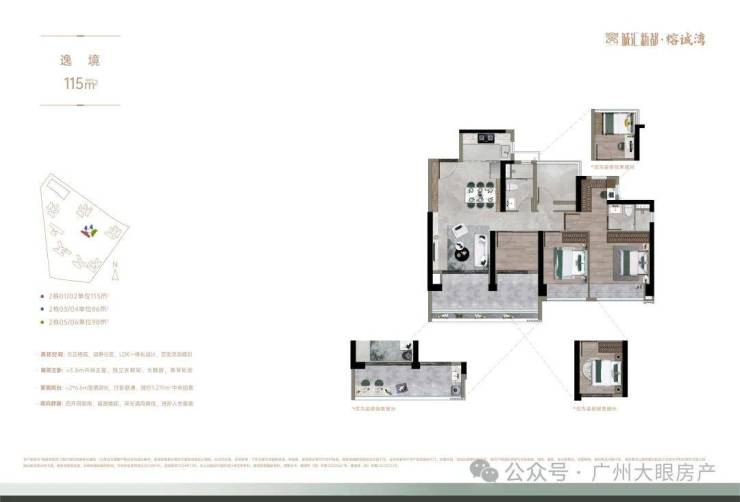 2 栋:约 86 ㎡三房、98 ㎡三房、115㎡四房