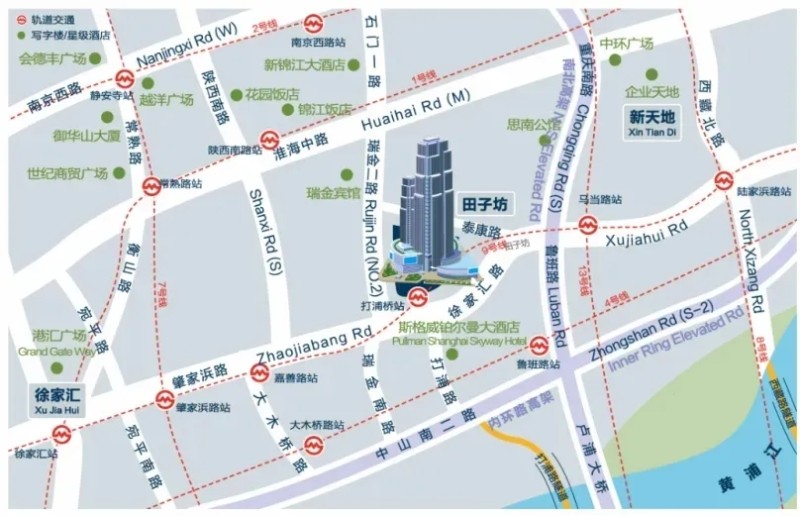 日月光伯爵居踞30万平方米城市综合体——日月光中心之上,自带建筑面积约14,8万平方米的商业中心,一站式餐饮、购物、休闲体验,集合便捷、高效、复合、生态于一体,匹配商务人士日常需求。周边汇集高端会展、五星级酒店、文化会所,为商务谈判与会客宴请提供优质场所;毗邻田子坊、思南公馆等沪上优秀历史建筑,人文气息浓郁,商务休闲模式任意切换。