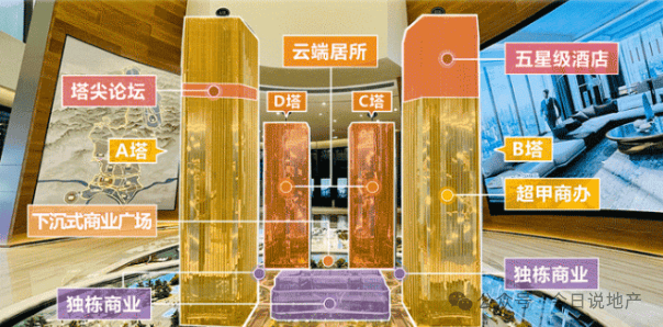 小区配套:项目集超甲办公、舒适大平层、总裁大平层、LOFT公寓、独栋办公、奢华酒店、高端商业等多元业态,打造事业、生活无界交融的一站式未来生活圈。