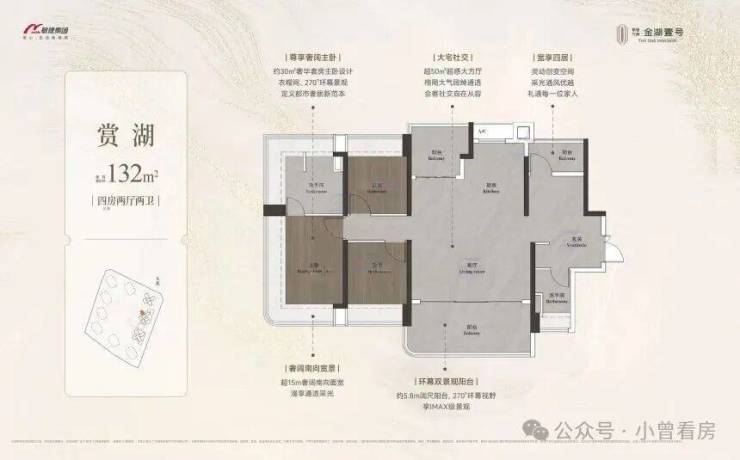 131-132㎡四房同样为全南向,部分户型能眺望湖景;